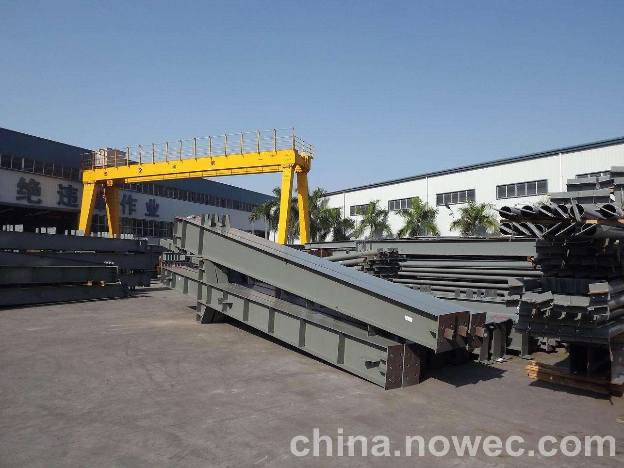 条状单元一般沿长跨方向分割,其宽度约为1~3个网格,其长度为l2或l2/2(l2为短跨跨距)。块状单元一般沿靖江网架平面纵横向分割成矩形或正方形单元。每个单元的重量以现有起重机能胜任为准。条(块)与条(块)之间可以直接拼装,也可空一网格在高空拼装。由于条(块)状单元是在地面拼装,因而高空作业量较高空散装法大为减少,拼装支架也减少很多,又能充分利用现有起重设备,故较经济。这种安装方法适用于分割后网架的钢度和受力状况改变较小的各类中小型网架,如两向正交正放四角锥、正放抽空四角锥等网架。